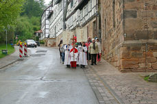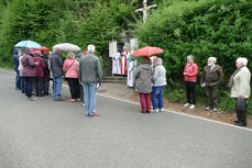 von der Kirche aus zum Kreuz an der Netzer Straße, wo Stadtpfarrer i.R. Ulrich