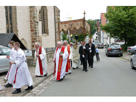 Hochamt mit anschließender Bittprozession, nach zweijähriger Corona-Zwangspause, um den Kleinen Berg statt.